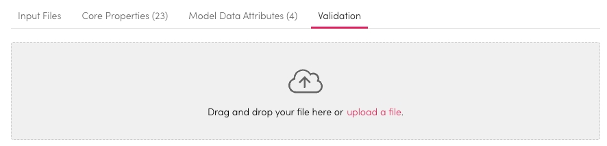 - Upload: Drag and drop a file for validation or select Upload Here to find a search for a file.