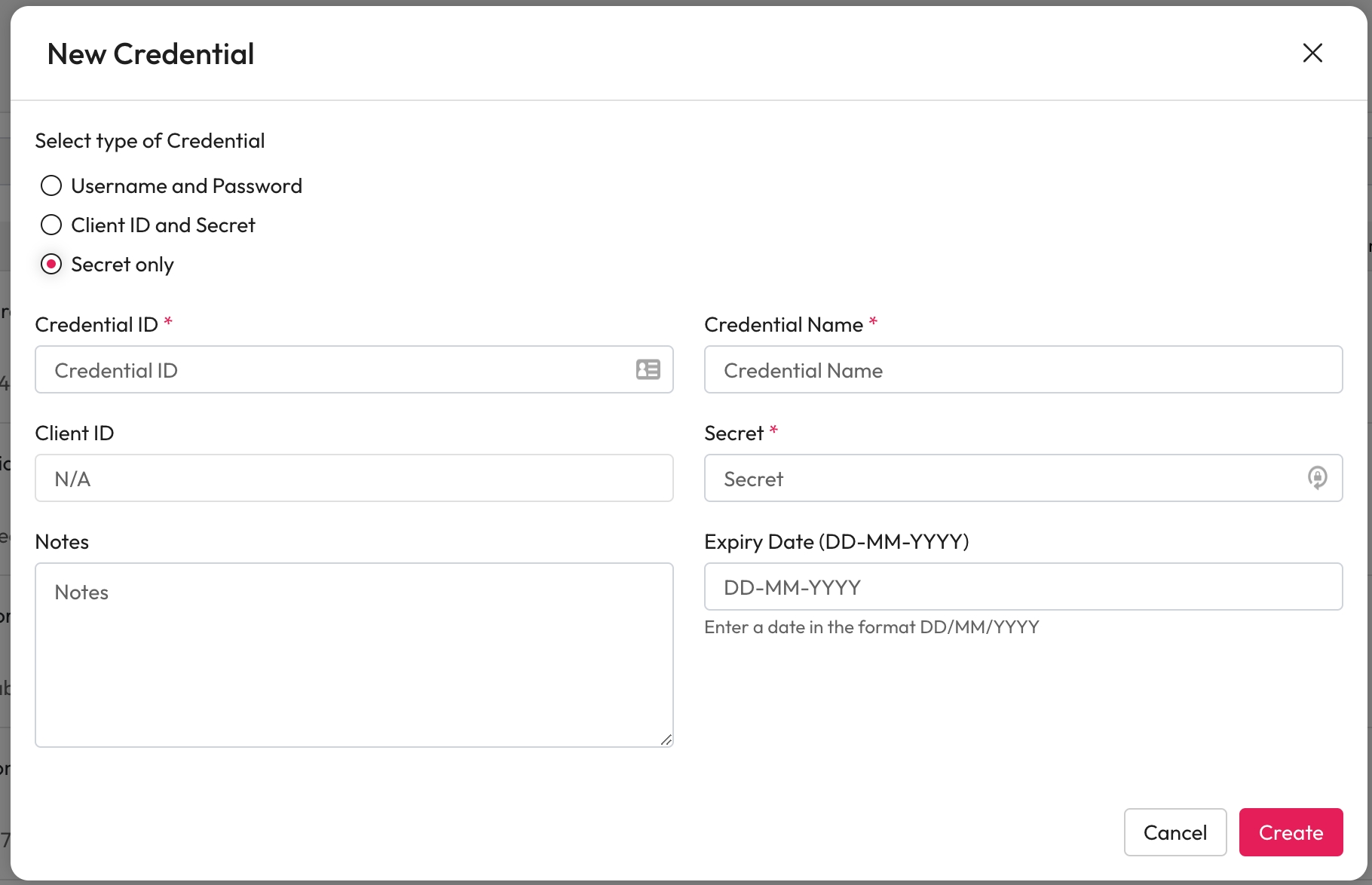 - Enter an Expiry Date for this credential. - For additional security you can add an expiry date. On this date the credential will no longer be used.