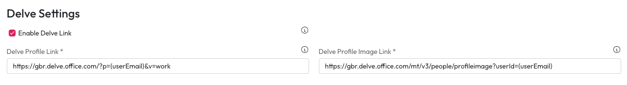 Enter the dynamic link to a Delve Profile in to the Delve Profile Link field.