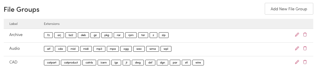 Create and manage File Groups and what Extensions make them. These are pre-configured with most options that you would want but you can add to this.