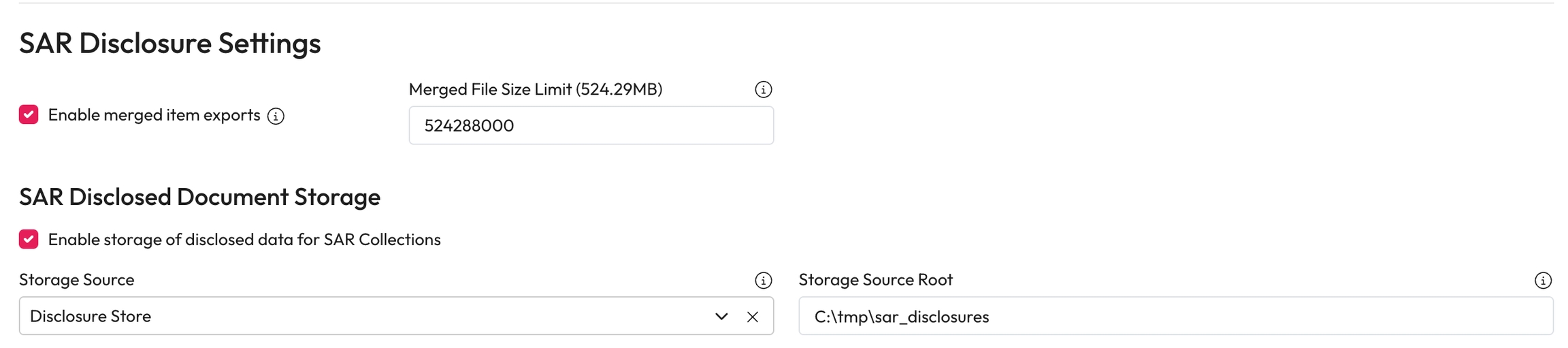 1. Enable storage of disclosed data for SAR collections - If checked, items disclosed will can be stored in a specific source.