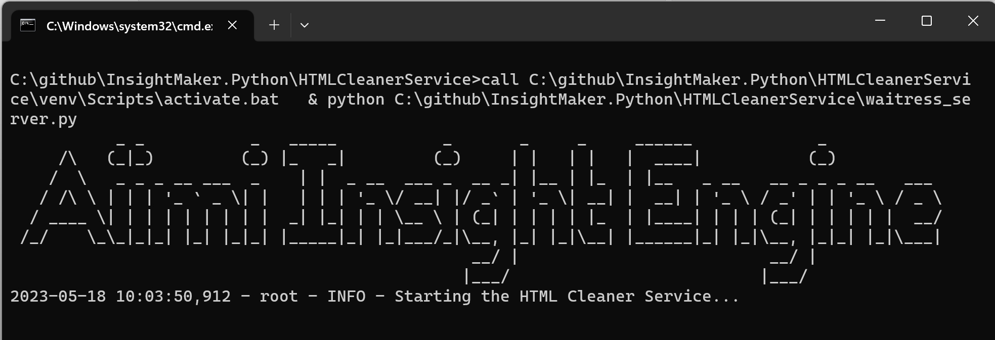Create a venv folder in the root of the HTMLCleanerService folder.