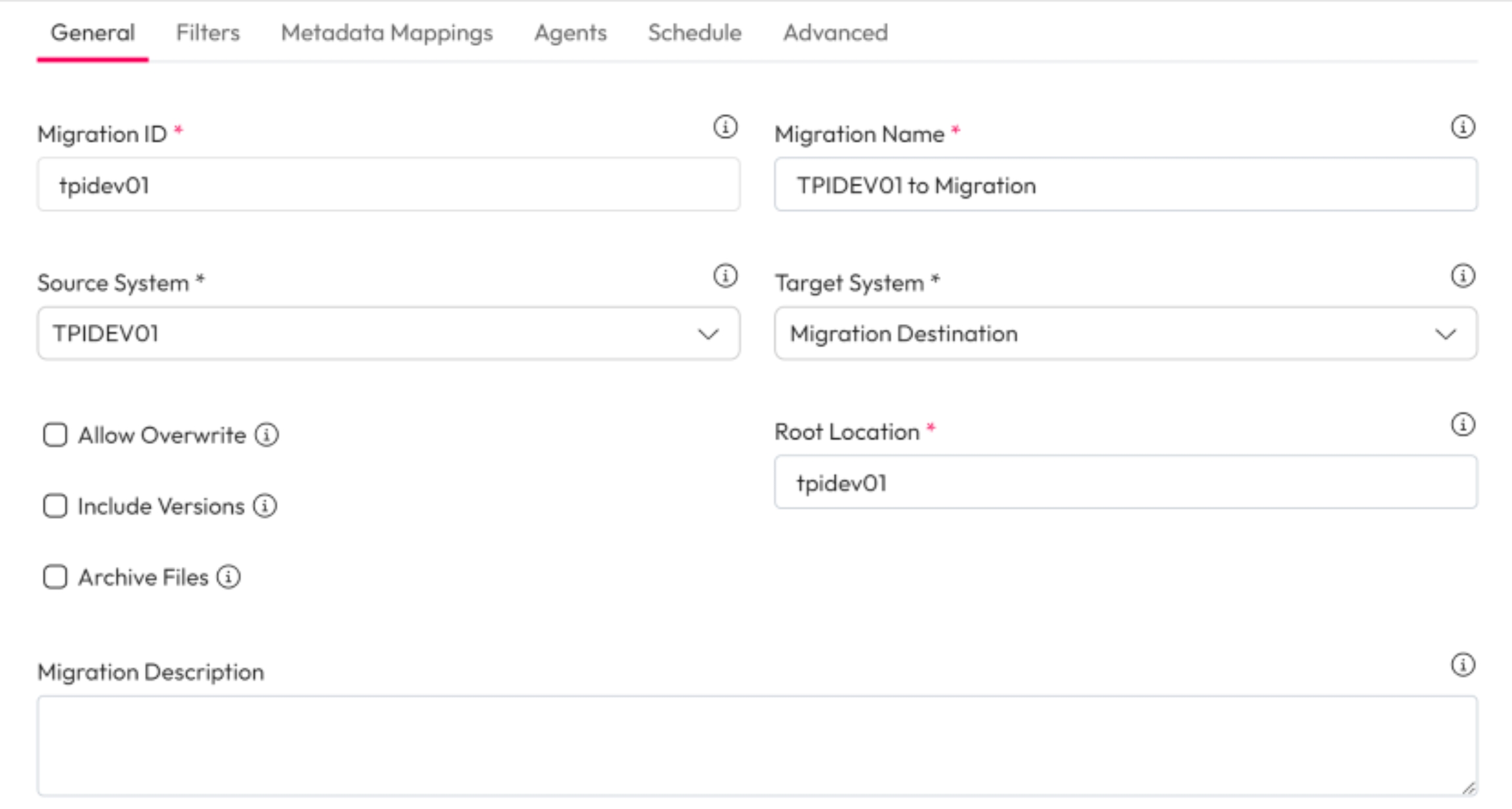 Enter a unique ID in Migration ID.