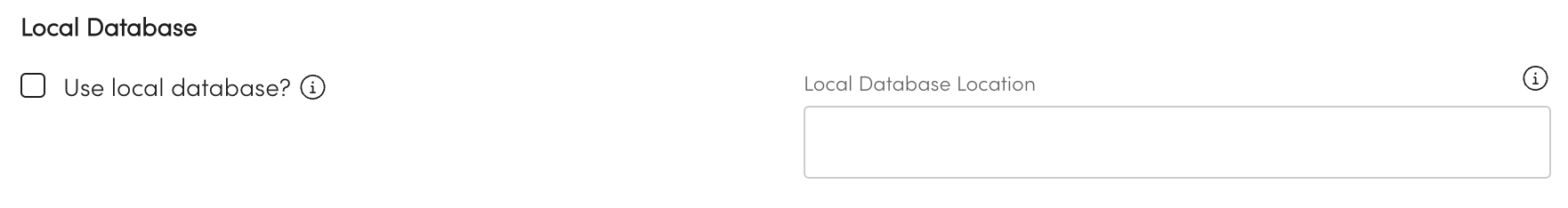 Enter the location within local database location. This location must not be used by another local database.