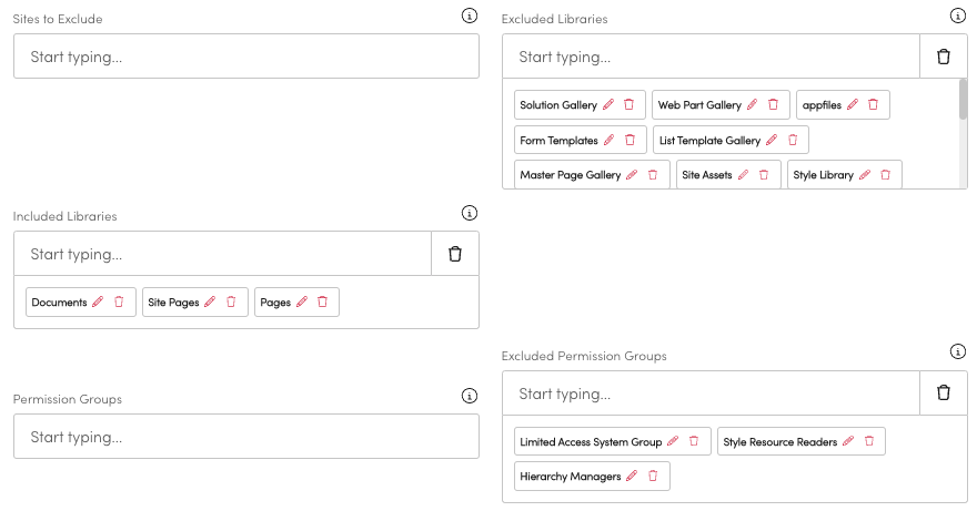 The default excluded libraries can be removed or edited as needed.
