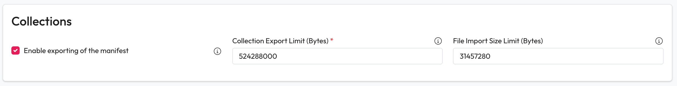 2. Collection Export Limit (Bytes) - Set the maximum size of a collection that can be exported in bytes.