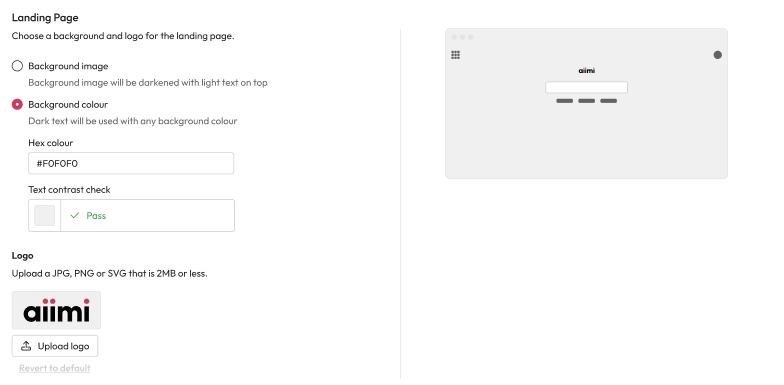Choose the type of background and the logo to use on the Aiimi Insight Engine landing page.