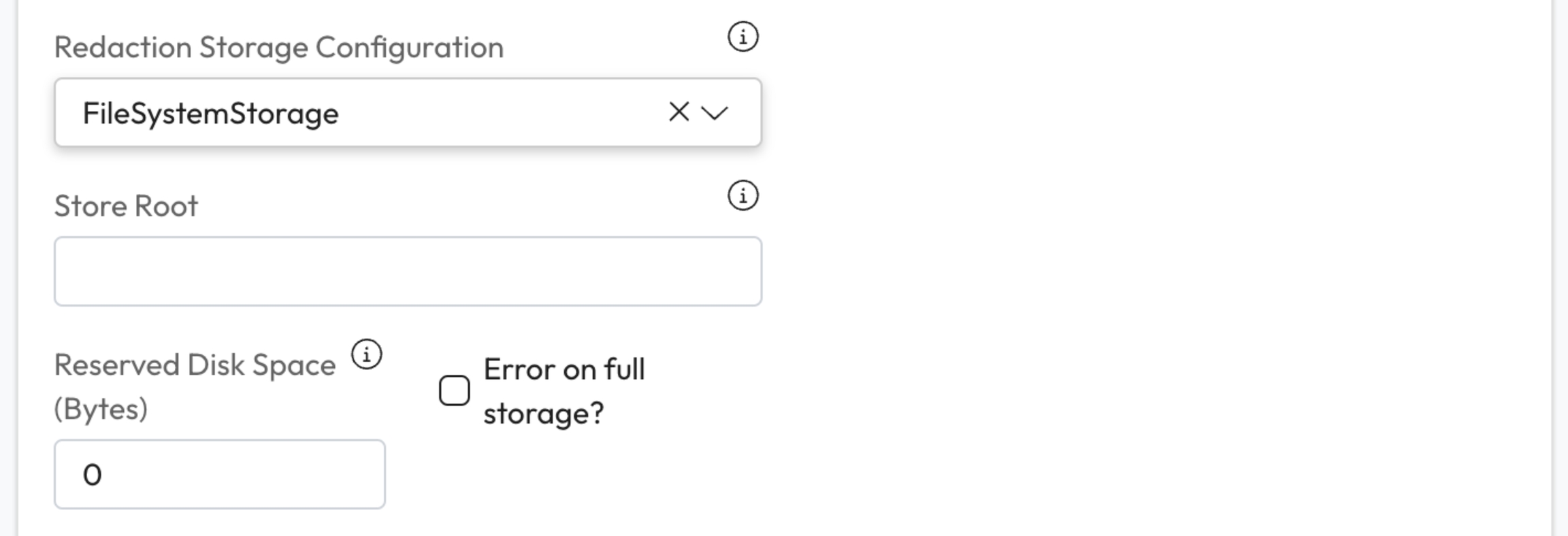 Reserved Disk Space: Enter the amount of reserved disk space for this storage in bytes. This will reserve space within the storage system for redacted data.