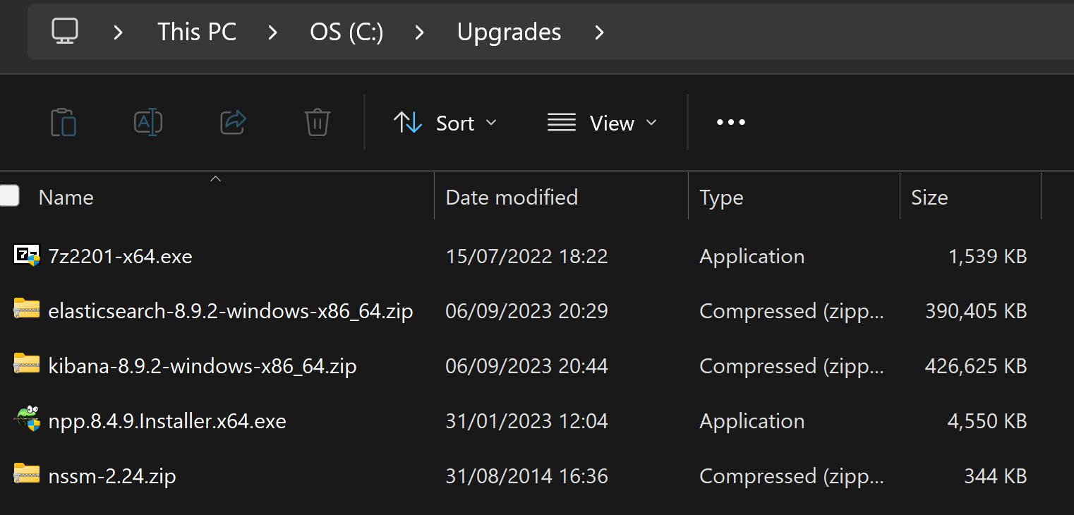 Next the Elastic, Kibana, nssm and Insightmaker zip files need to be extracted.