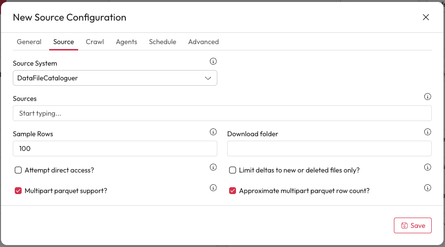 Source System: Select Data File Cataloguer from the dropdown.