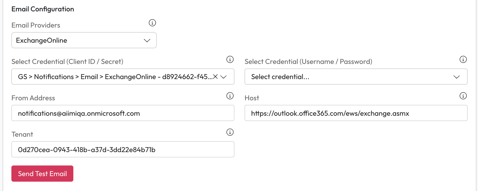 1. Select the Client ID and the secret for the O365/Exchange Online configuration from the Select Credential dropdown (Client ID / Secret).