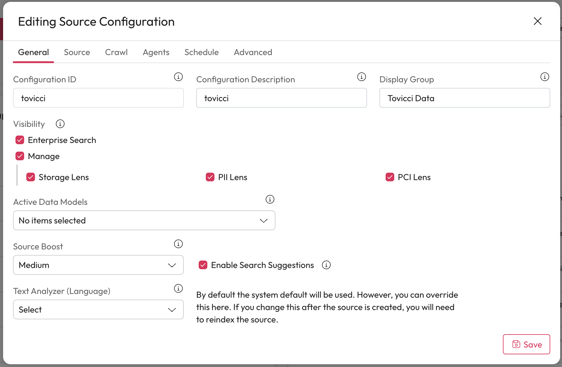 Sources represent either different repositories or different areas of a repository. For example, we may have a source for SharePoint HR and a source for SharePoint Asset.