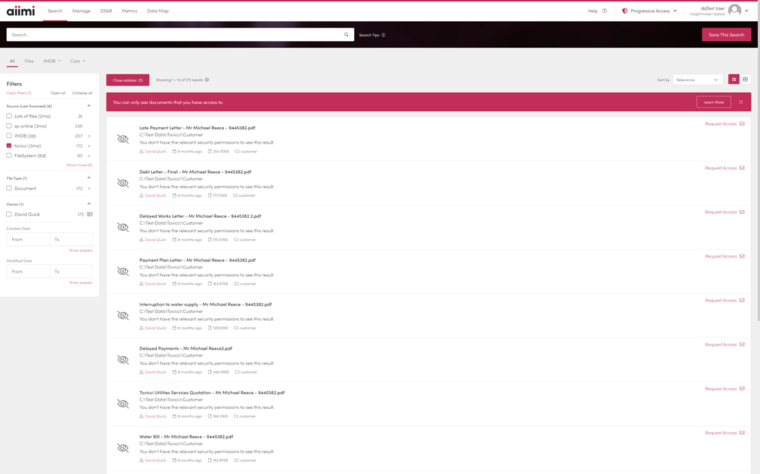 If a user with progressive access finds an item they can't access they will see the result in their list but won't be able to open it.