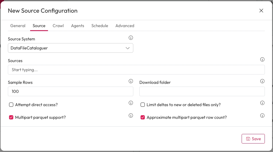 Source System: Select Data File Cataloguer from the dropdown.