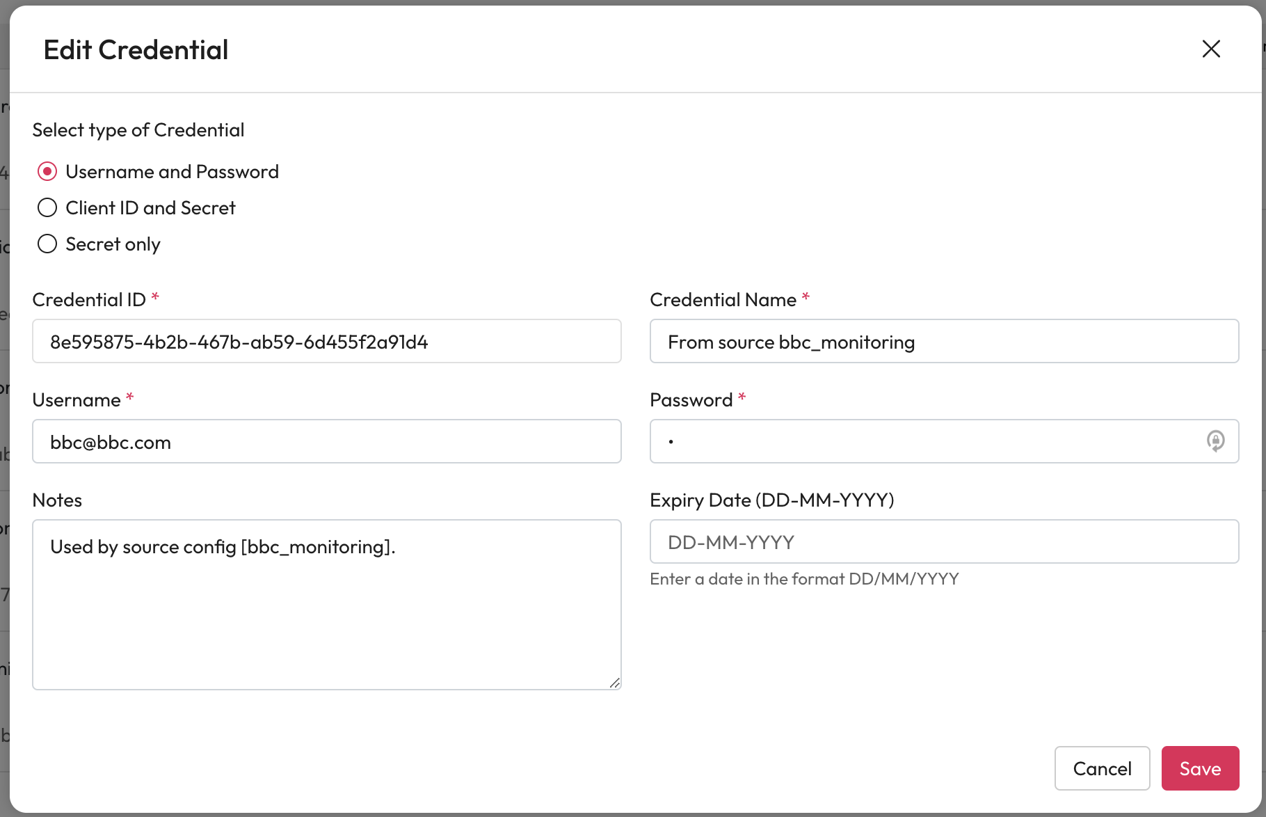 If you need to edit a credential for a configuration you can do this within the control hub credentials page. You can edit any part of the credential including the Name, Username or Password but not the Credential ID. This will be most helpful when Passwords or Usernames are updated.