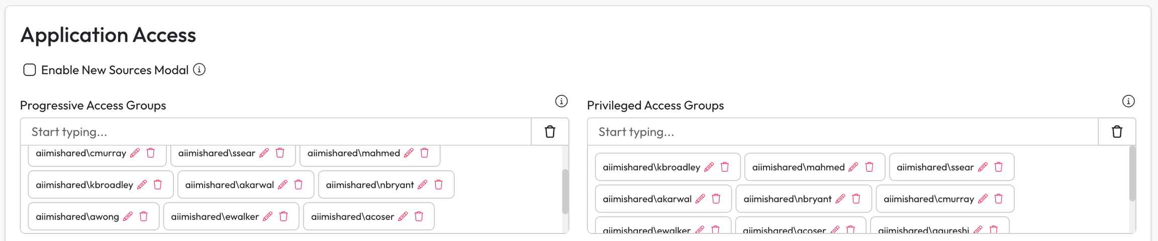 2. Remove user groups from seeing Guided Tours, Code of Conduct and New Source Modals by adding them to Toggle Modals Per AD User/Group.