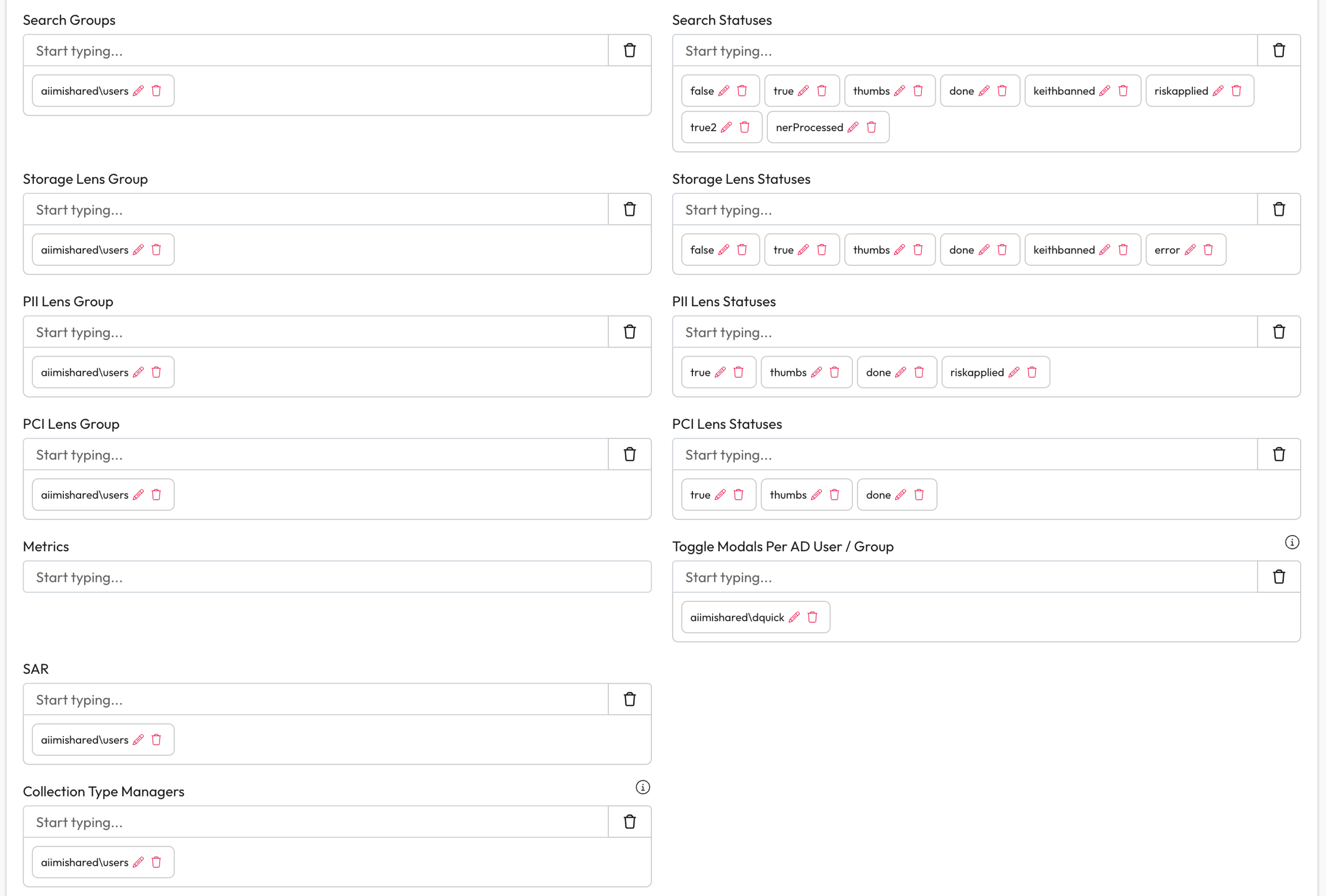 For each section of Aiimi Insight Engine you can set access based on user groups.