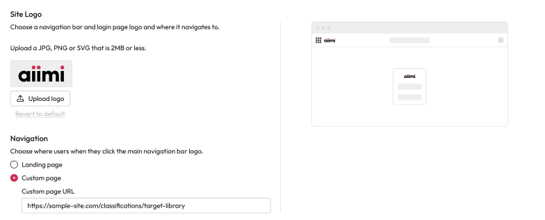 Custom Page: Select this to take users to a different URL when they select the logo.