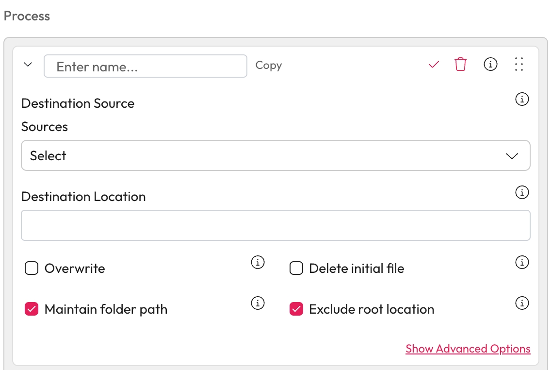 Delete initial file - If checked the original item from the original source will be deleted.