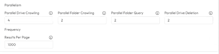 Parallel Folder Query: Enter the number of Elastic queries, from one drive, that should be crawled at once. This can impact the Elastic performance.