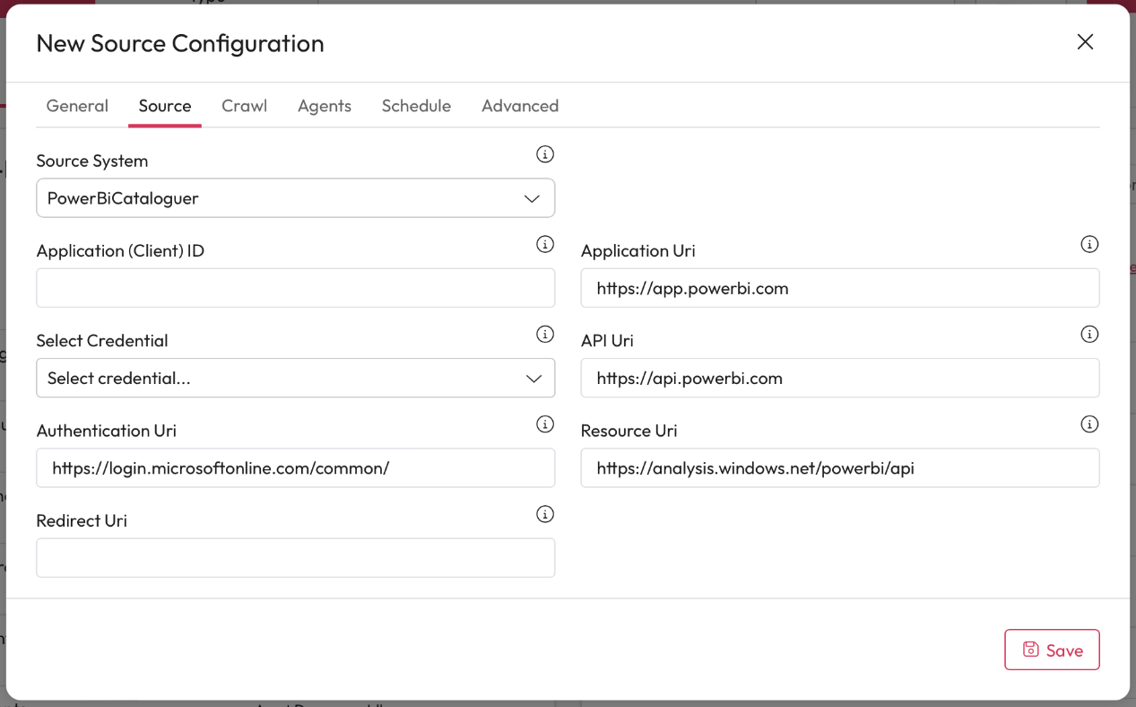 Connect your PowerBi Catalogue to Aiimi Insight Engine to make the most of the data in your business. Once you have selected a Source System type more detail will expand to customise this.