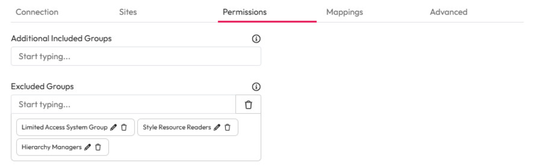 Additional Included Groups - Add any additional user groups that should have access to this source within Aiimi Insight Engine. Permissions need to be granted in SharePoint for these users to access any items.