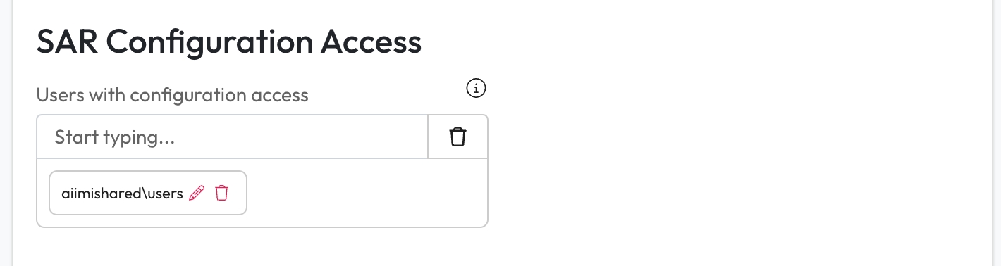 Users with configuration access - Enter the user groups that should have access to configure SARs.