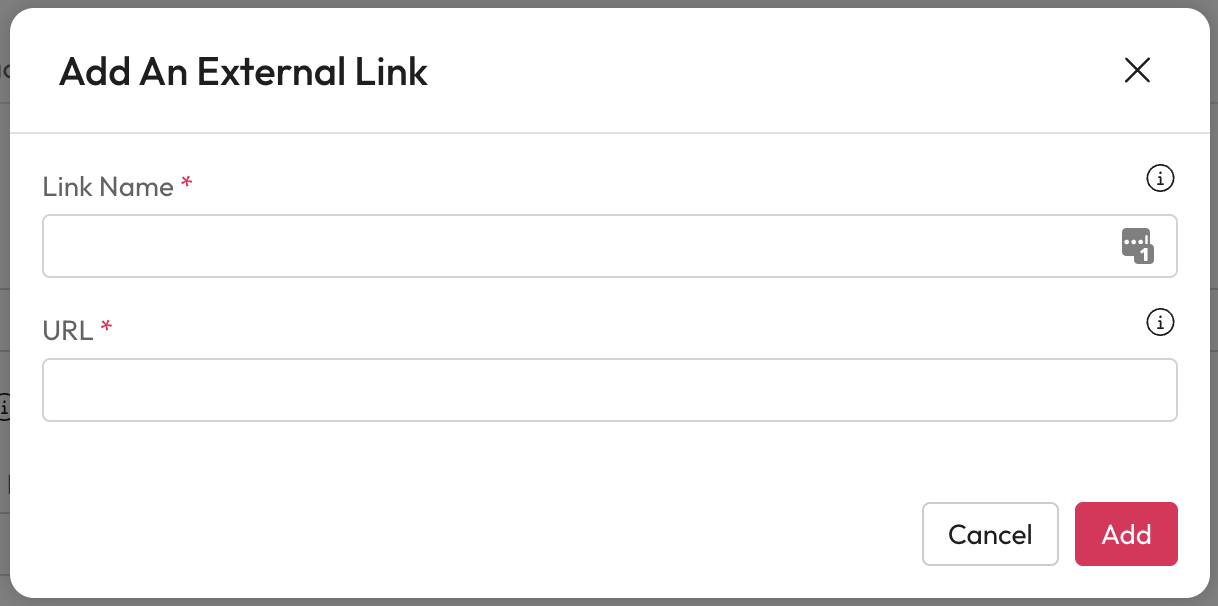 Select Add Link to add new search tools to Aiimi Insight Engine.