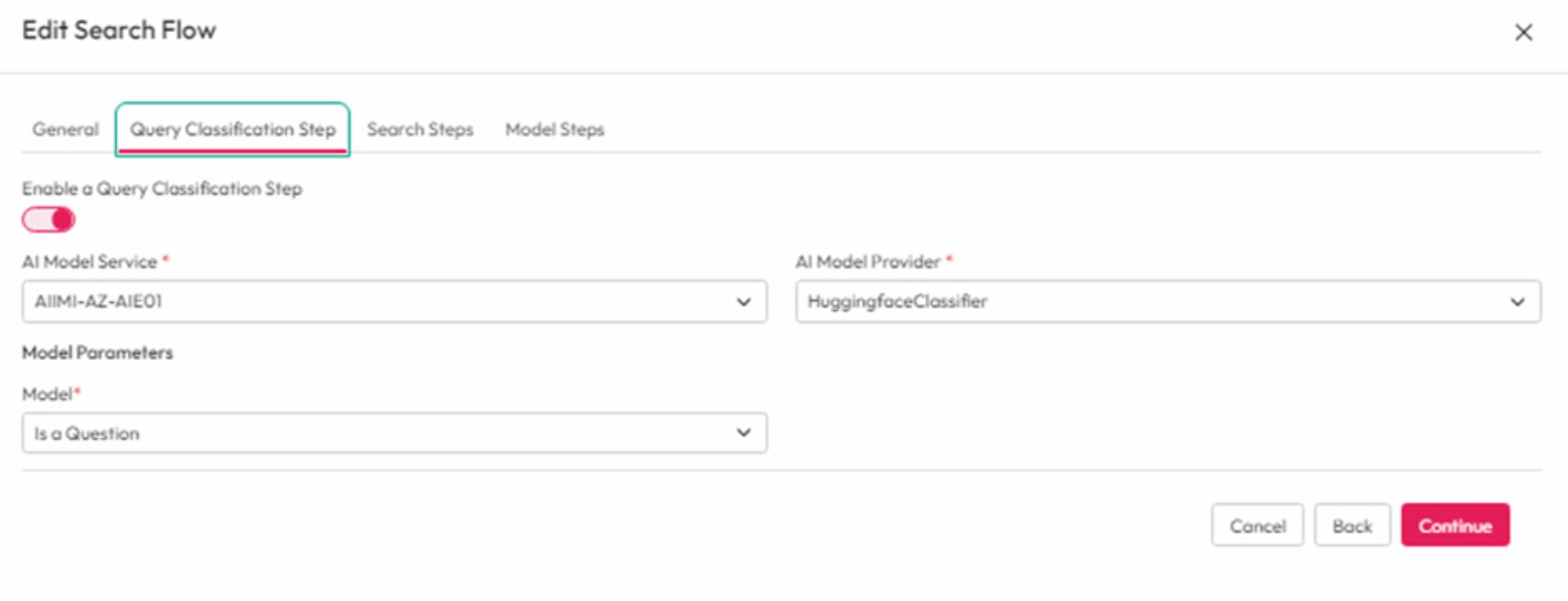 This step enables you to process the query string and label it before executing the search. It can determine the direction of the flow based on the search steps configured.
