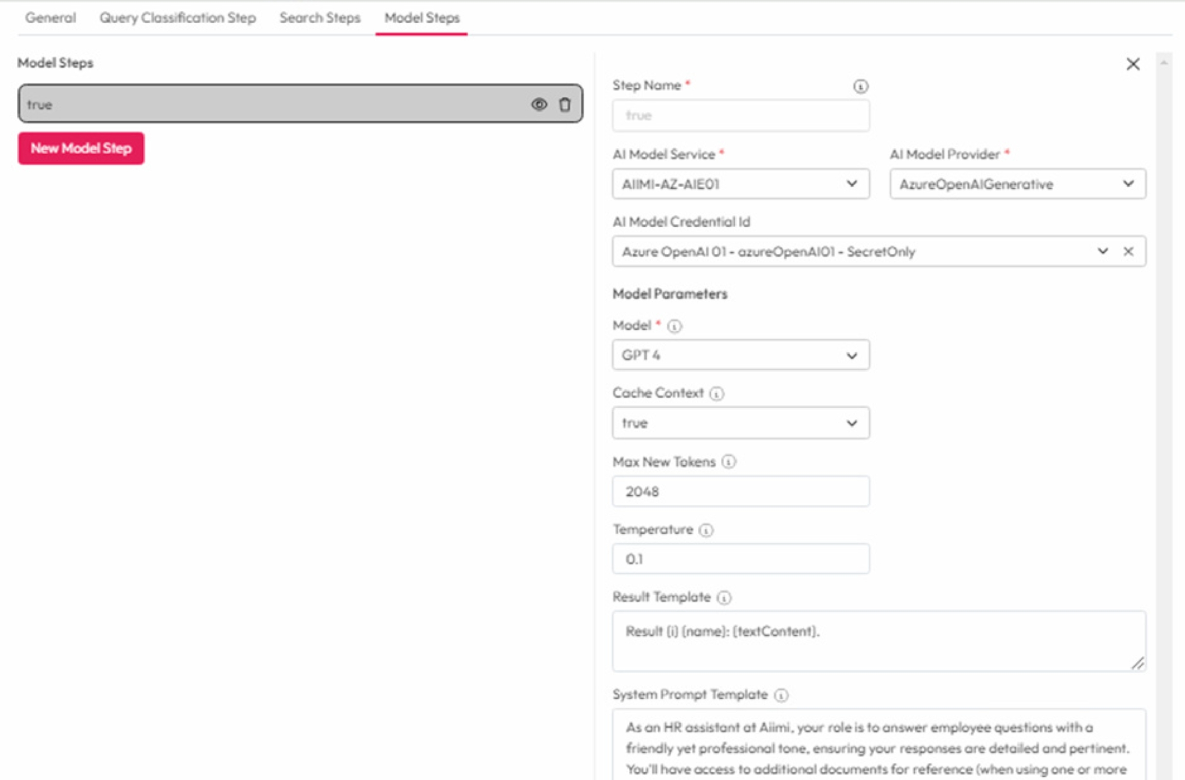 1. AI Model Service: Select a model service from the dropdown.