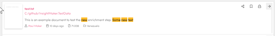Run the pipeline and then look the document up in Aiimi Insight Engine. If we search for ‘Some new text’ we should find it (assuming you don’t have lots of other items with the same text in).