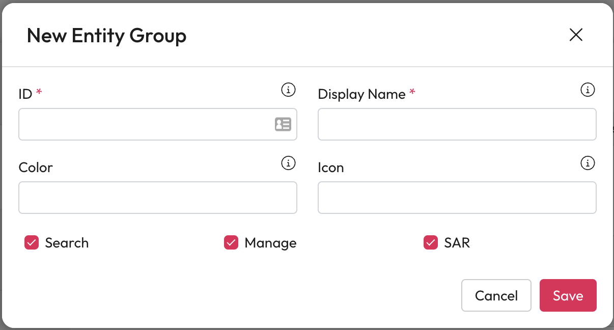 Entities are categorised and live within entity groups. You can add entities to existing groups, edit groups and create new groups.