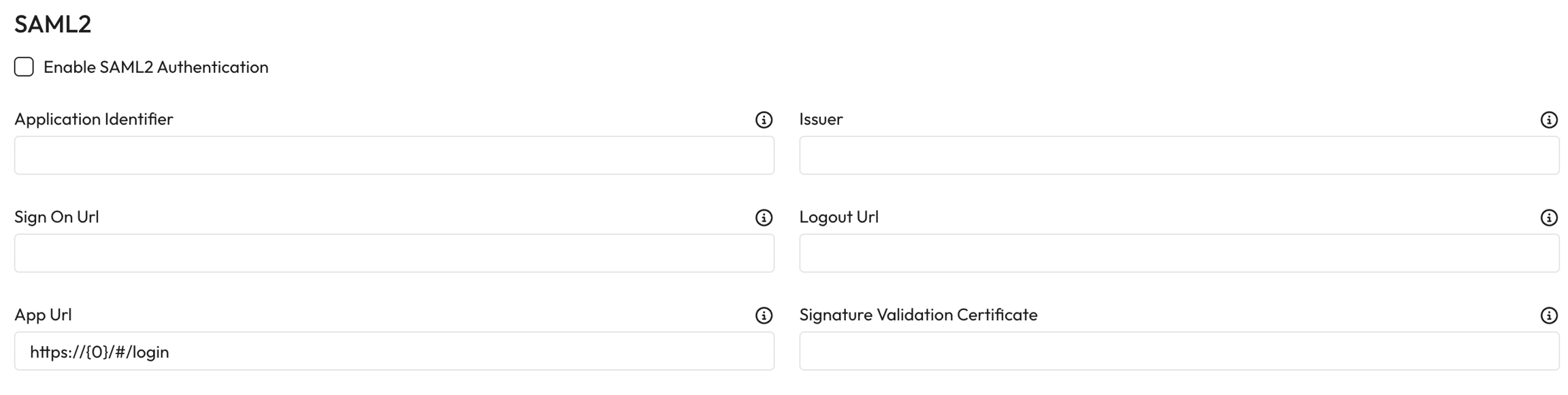 SAML 2 Authentication - If checked SAML2 will be used for Aiimi Insight Engines Authentication.