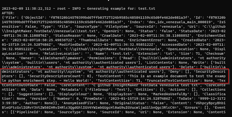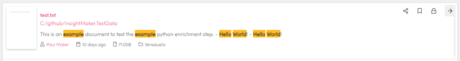 Lastly, let’s see what the item looks like in Workplace AI by searching for ‘test.txt example hello World’.