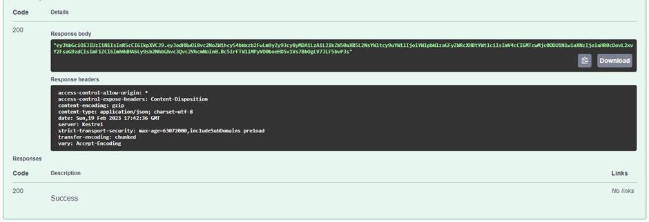 Copy the bearer token from the Response Body. Do not include the surrounding quotes.