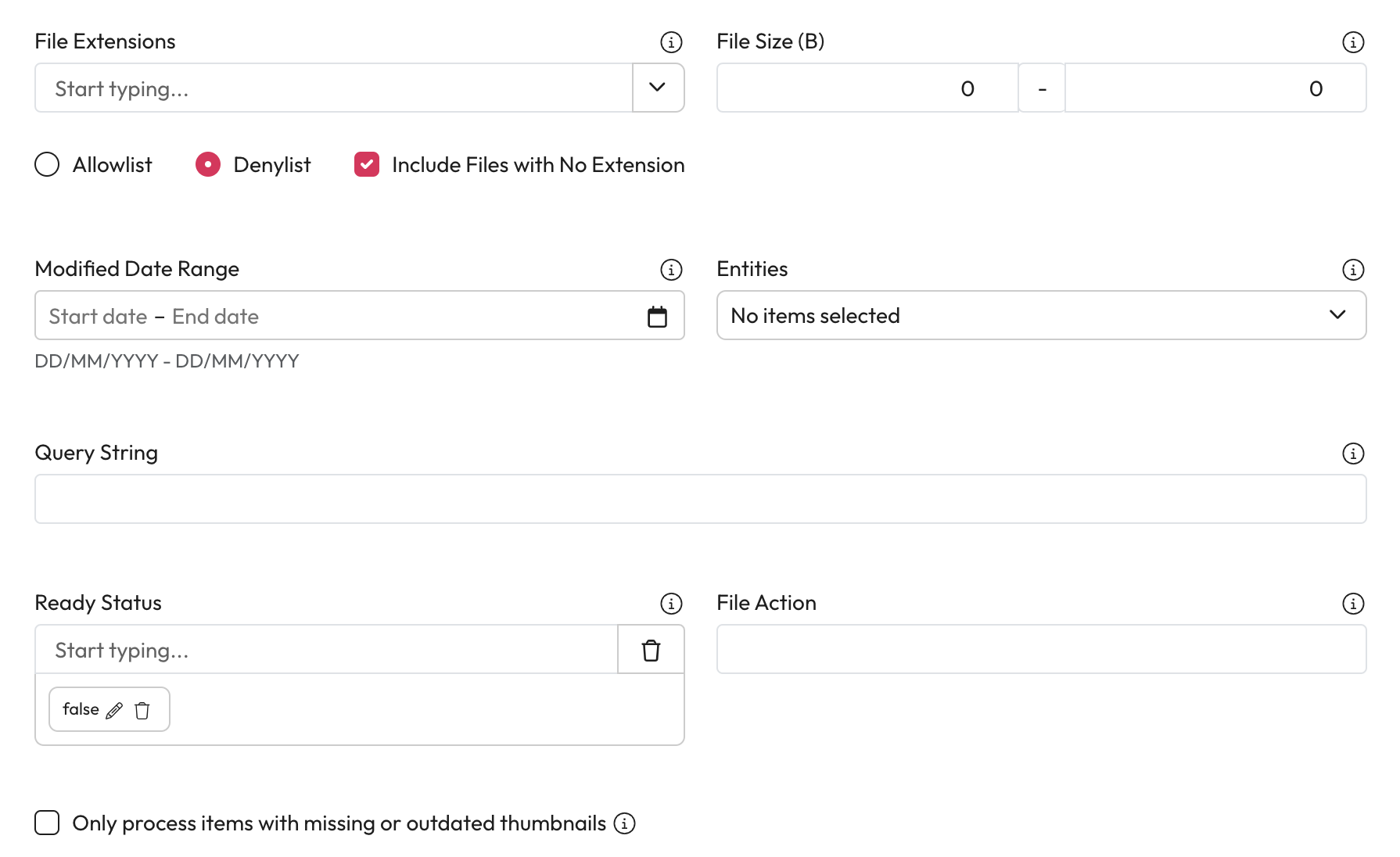 1. **File Extensions** - Enter all of the file extensions you want to include.&#x20;