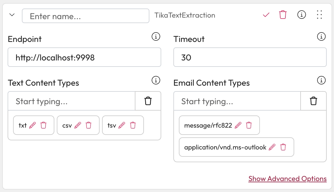 Tika Text Extraction converts native documents to plain text, this is what is indexed in Workplace AI.