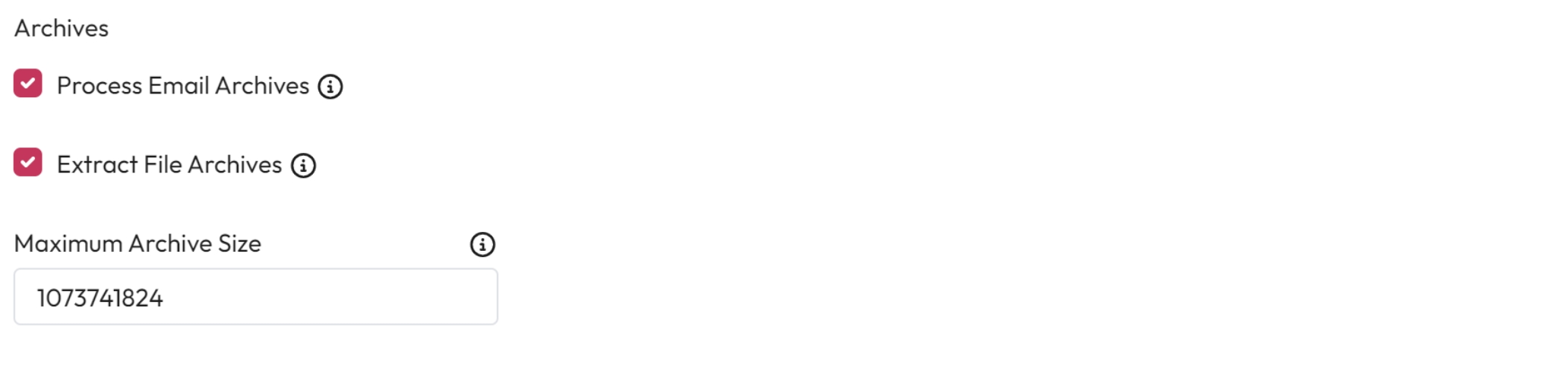 Maximum Archive Size - Enter the maximum size of an archive that can be processed in bytes.