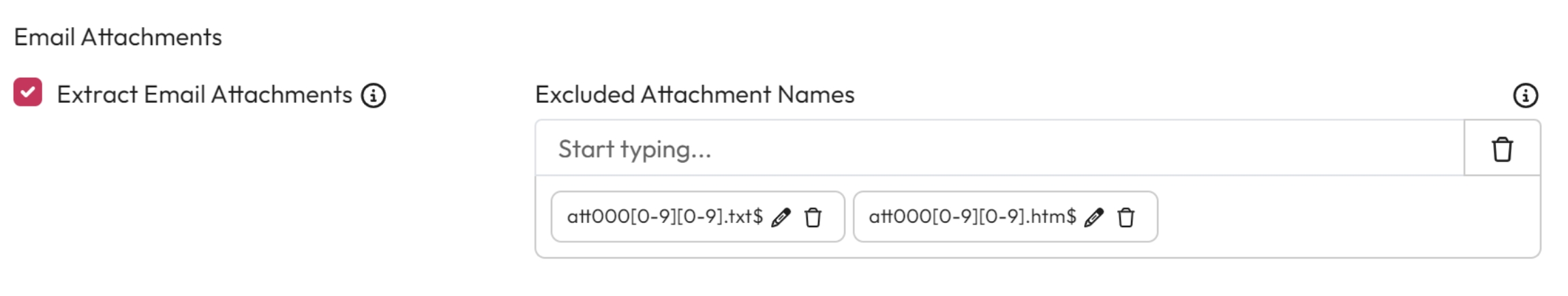 Excluded Attachment Names - Use Regular Expressions to choose what attachments are excluded from processing.