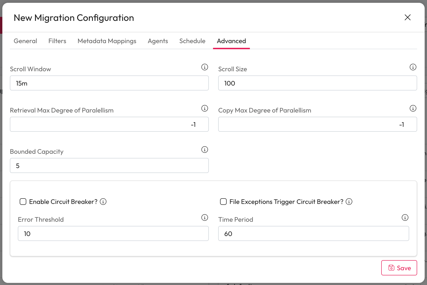 Check Enable Circuit breaker to stop a migration when the error occurs multiple times.