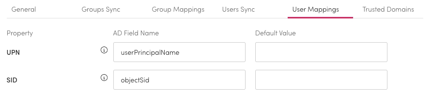 Within User Mappings match up the Workplace AI properties with the AD Field Name. Most of these should stay the same across all systems. If you have any variation in naming make sure they are updated within the AD Field Name field.