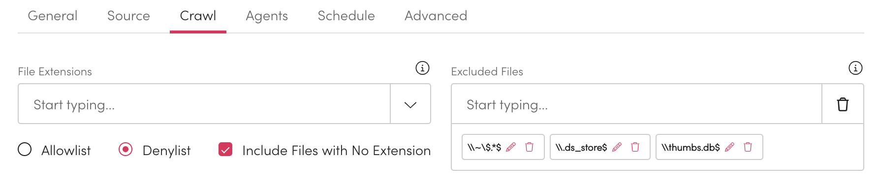 2. Once you have added File Extensions to the Crawl you can choose if you are creating an allow or exclude list.