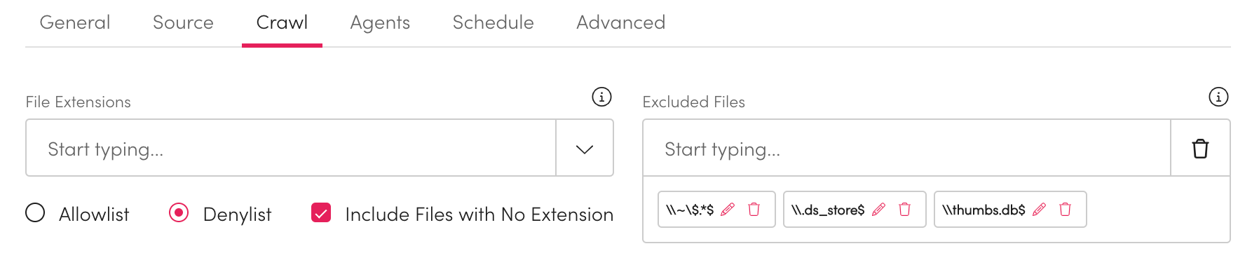 Once you have added File Extensions to the Crawl you can choose if you are creating an allow or exclude list.