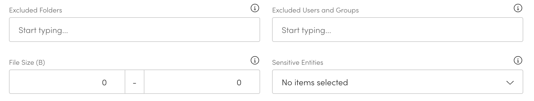 Determine the size of files that will be crawled by adding a minimum and maximum to the File Size (B) field. This can be helpful if you want to avoid empty files.