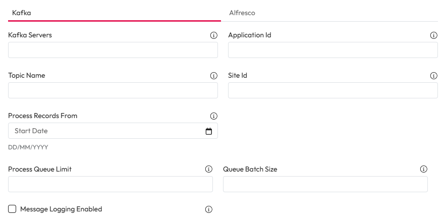 Message Logging Enabled: If checked, the result of every Kafaka message will be logged. It identifies if an item is added to the queue for processing and if it isn't then the reason why is logged.