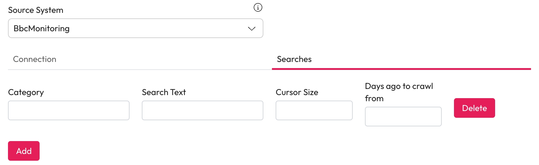 Add multiple searches to your BBC monitoring source to match the information your users need in the Searches tab.