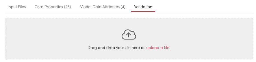 1. **Upload:** Drag and drop a file for validation or select Upload Here to find a search for a file.