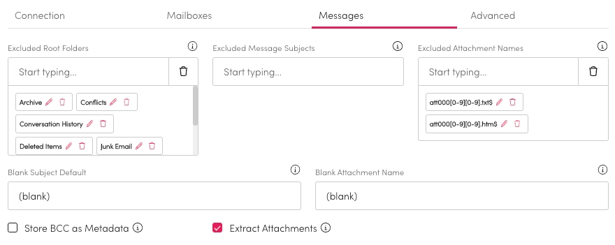 Store BCC as Metadata: Check this to extract and store all BCC addresses. This applies to sent and received emails.