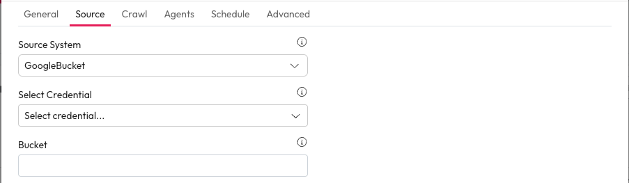 Connect your Google Bucket source to Workplace AI to make the most of the data on your machines. Once you have selected a Source System type more detail will expand to customise this.