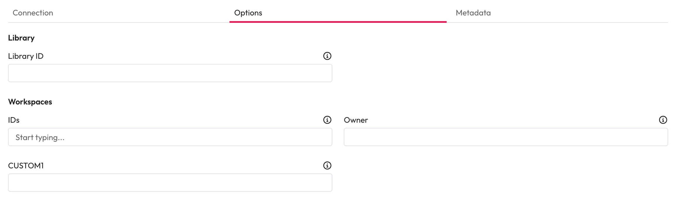 The other options on this tab allow a subset of workspaces to be selected and are optional if you want to crawl everything with a single connector.